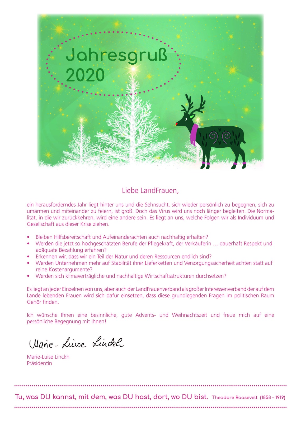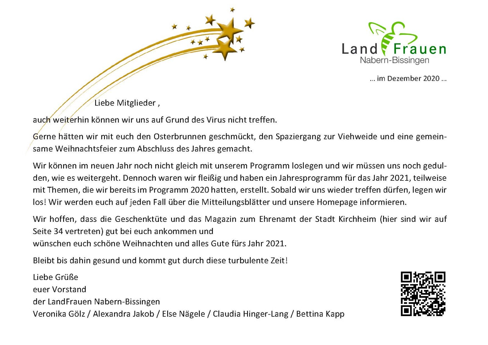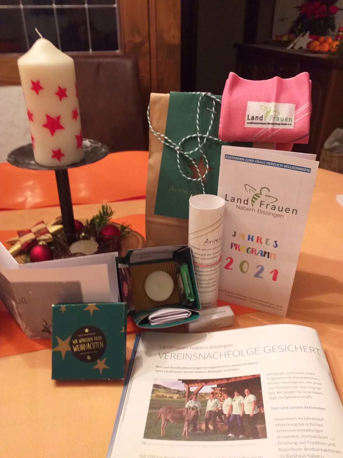 Darin enthalten waren die Weihnachtsgrüße der LandFrauen Nabern-Bissingen, der Jahresgruß des LandFrauenverbands Württemberg-Baden e.V., ein LandFrauen-Loop, eine Explosionsbox sowie unser Jahresprogramm 2021.