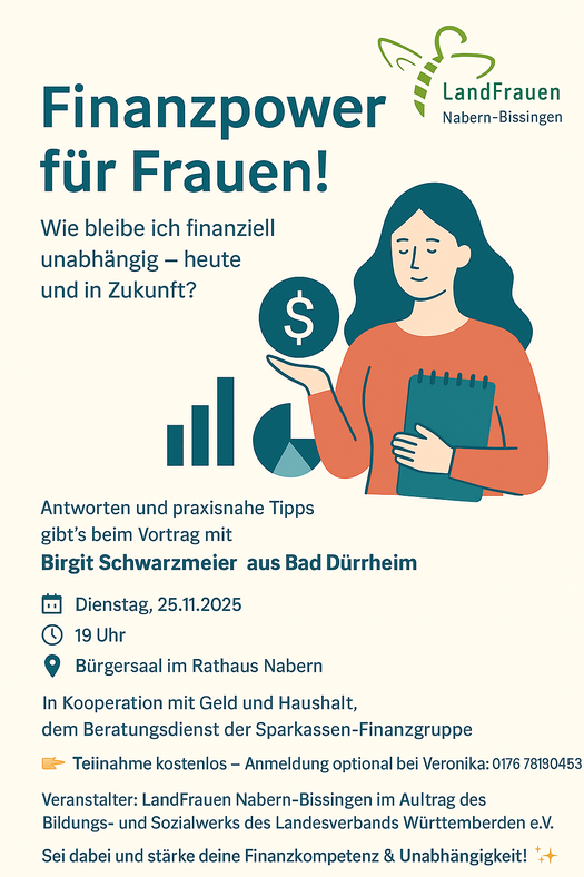 Die Veranstaltung der LandFrauen Nabern-Bissingen findet im Auftrag des Bildungs- und Sozialwerks des Landesverbands der LandFrauen Württemberg-Baden e.V. statt.